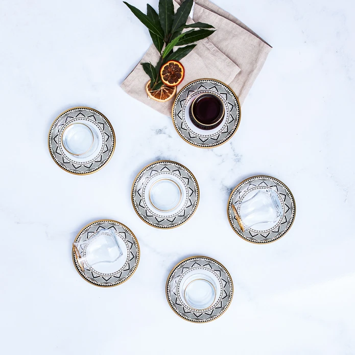 طقم كاسات شاي تركية مميزة من كاراجا ٦ اشخاص